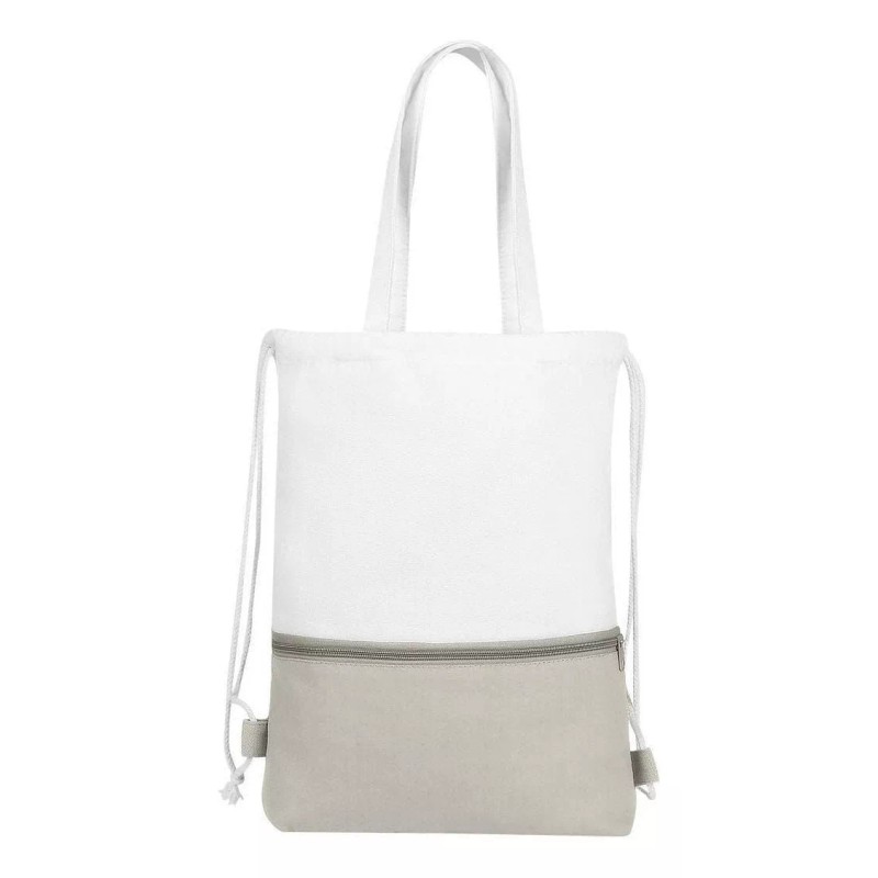 Bolsa-mochila color gris con asas y cordòn pràctica para el dìa a dìa