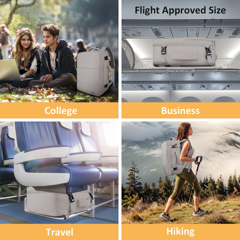• Mochila para computadora portátil aprobada por vuelo: el cierre de cremallera de 180 grados le ayuda a pasar rápidamente el control de seguridad. Los artículos imprescindibles para viajes para mujeres caben encima y debajo del asiento. La mochila para viajar en avión también cumple con los requisitos de equipaje de mano de las aerolíneas, aplicables a aerolíneas como Easy Jet. , Espíritu, Azul Jet