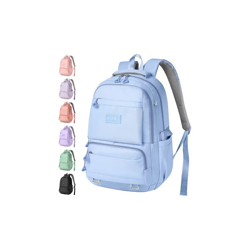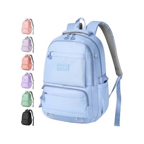 Mochila Escolar Iforu Antirrobo Backpack-02 Color Celeste Diseño Liso 30L