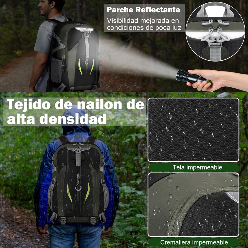 Mochila senderismo hombre y mujer de 50L Ligera, mochila de camping con bolsillo impermeable, mochila hiking para acampar, campismo, deportes al Aire Libre, Negro