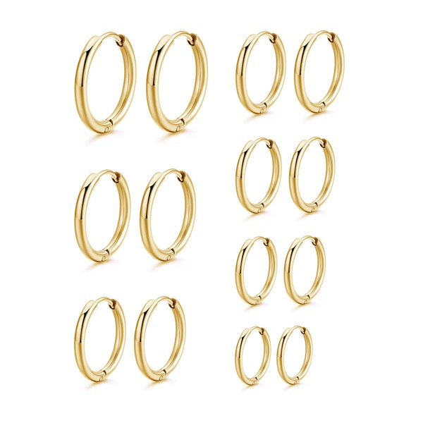 Mochity 3-7 Pairs of Hoop Earrings Silver Gold, 14K Gold-Plated Earrings, 316L Stainless Steel Earrings, Hypoallergenic Small Hoop Earrings, Women Men, Stud Earrings Gold Silver, Stainless Steel
