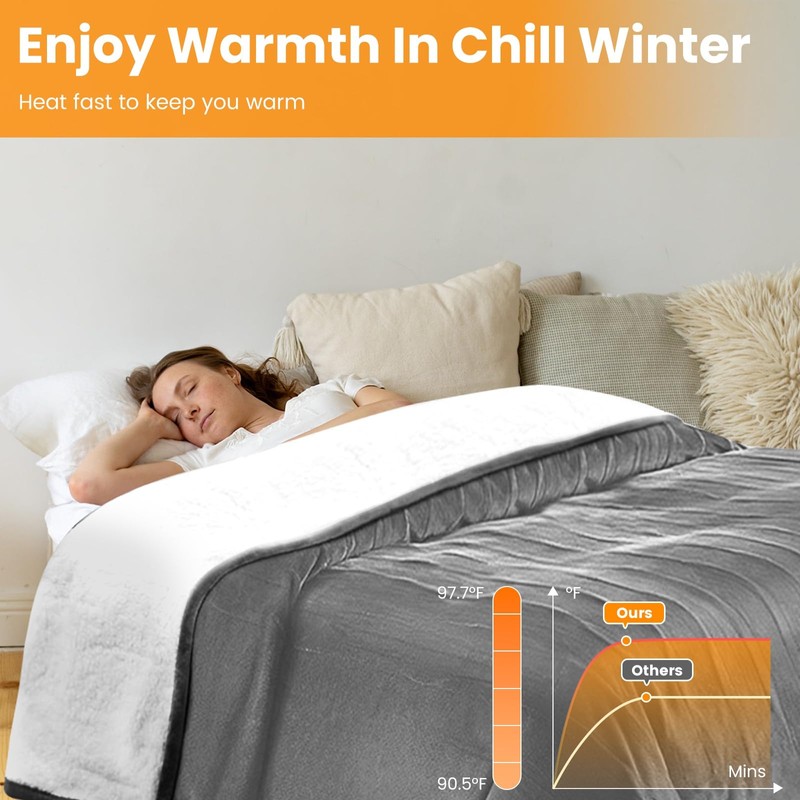 - Safe Heating & Overheat Protection: Upgraded insulated electric wiring is evenly spread throughout this blanket, ensuring a safe and even warmth. Built-in overheat protection helps minimize the risk of fire or burns. What a gift choice for your families and friends in this cold chilly winter
