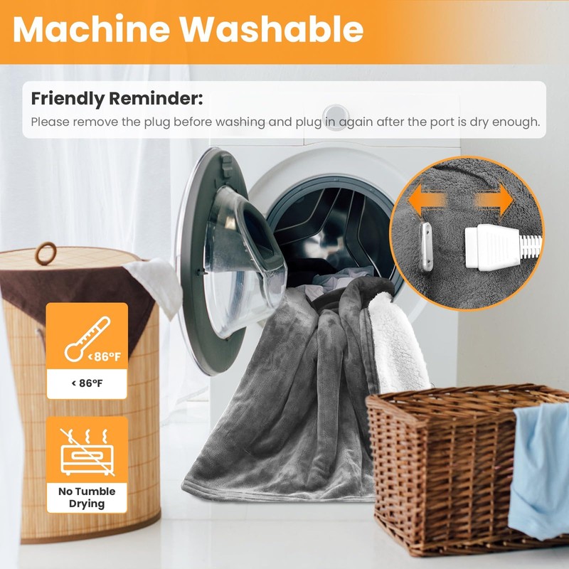 - Machine Washable: Simply remove the heating controller, throw it into the washing machine for quick and easy cleaning, then let the blanket dry naturally. Please do not dry clean or use bleach. You’d better hand wash this blanket to ensure its longevity