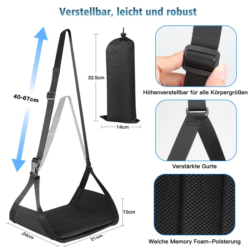- 【Verstellbare Gurte für maximalen Komfort】Die Riemenlänge ist flexibel einstellbar, um sich jeder Sitzhöhe ideal anzupassen. Ob im Flugzeug oder im Büro – Sie finden garantiert die perfekte Position.