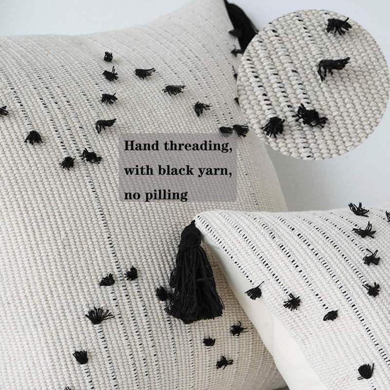 Mocofo 40.6 cm Cream/White/Grey Woven Tufted Tassel Fringe Cushion Sofa Throw Bohemian Embroidery Cream, 40.65 x 40.65 cm, White, 30 x 50 cm
