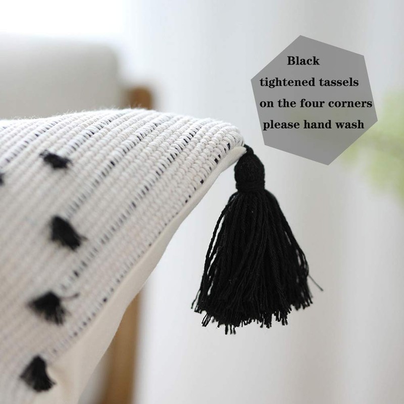 Mocofo 40.6 cm Cream/White/Grey Woven Tufted Tassel Fringe Cushion Sofa Throw Bohemian Embroidery Cream, 40.65 x 40.65 cm, White, 30 x 50 cm