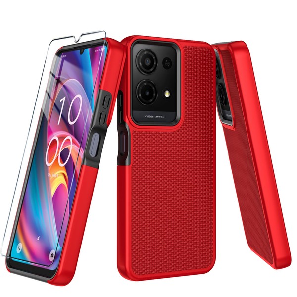 Mocotto for TCL K32/K33 5G 2025 Case with Tempered Glass Screen Protector,Dual Layer Heavy Duty Shockproof Protection (Red)