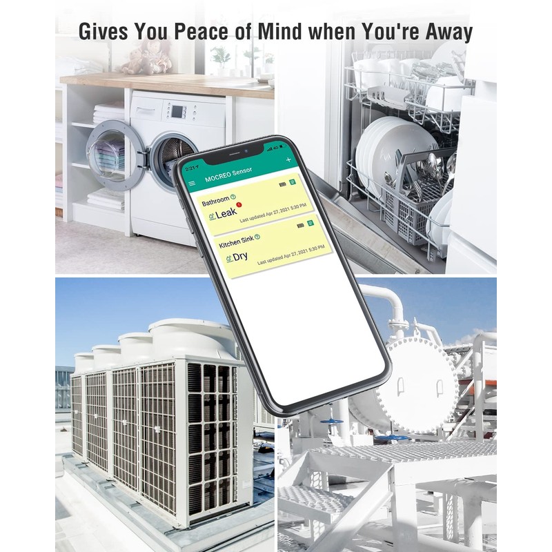 - PROTECT HOME FROM COSTLY WATER DAMAGE - Note: SW2 water leak detector can not work alone, it must work with MOCREO Hub(Search: B08V555LXZ). The MOCREO water leak detector will sensitively detect water leakage, once there is a leakage, it will immediately sound a loud audible alarm and send App notifications and Email alerts to keep you one step ahead of the problem!