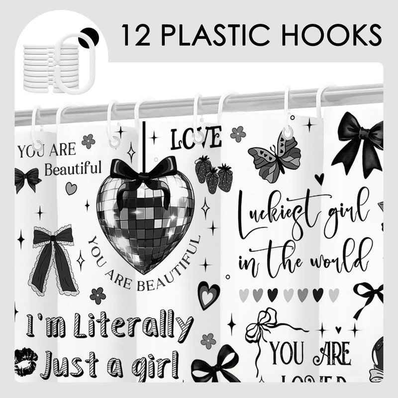 - 【Easy Installation & Care】Featuring metal grommets at the top, this y2k shower curtain can be easily hung on a rod using shower rings. The included 12 C-hooks make setup effortless. For cleaning, simply remove the rings and toss the curtain into the washing machine. If needed, gently iron on a low setting to smooth out any wrinkles, ensuring it looks as good as new.
