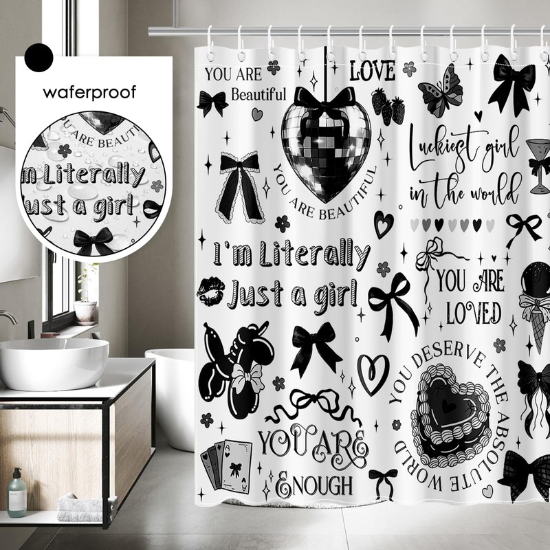 - 【HD digital printing】Utilizing state-of-the-art digital printing technology, the cute black shower curtain retains vibrant colors and sharp details, creating a stunning visual impact that elevates the look of any bathroom. Free from chemical odors and fading, it is eco-friendly and completely safe for everyday use, it is an eco-friendly choice for your home.