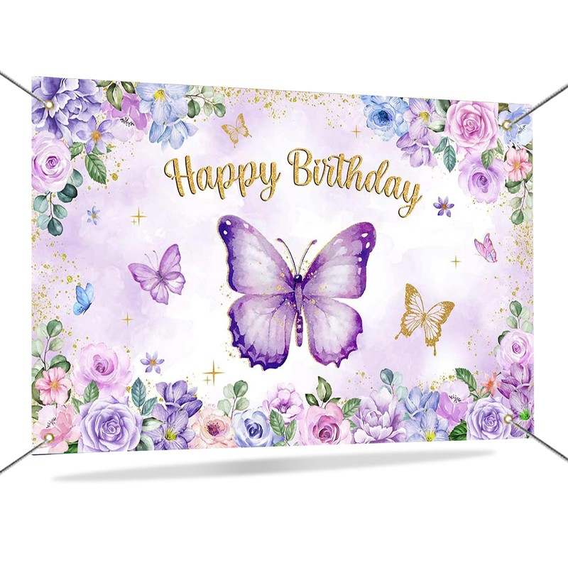 - Elegant Design: This butterfly birthday backdrop is printed with a purple butterfly floral design and clear"happy birthday" text, perfect for a girl's butterfly-themed birthday party event