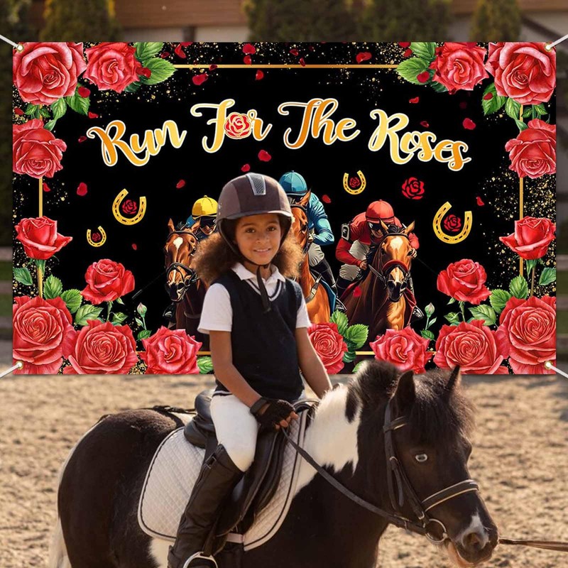 Mocsicka Kentucky Derby Backdrop Run for The Roses Kentucky Derby Decorations for 2025 Adults Horse Racing Party Red Roses Photography Background Banner 70.8 x 43.3 Inch