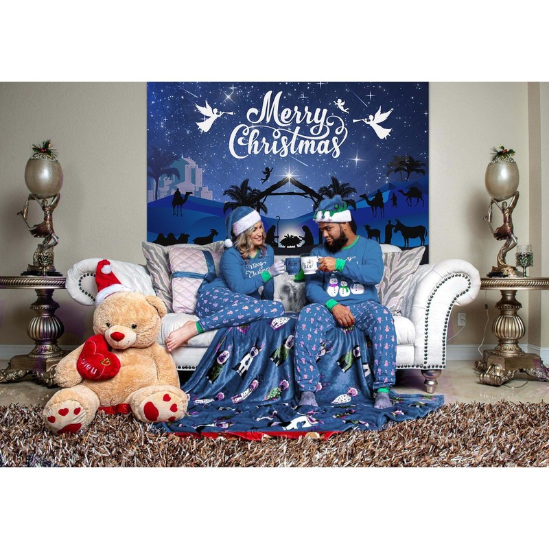 Mocsicka Merry Christmas Nativity Backdrop Blue Large Merry Christmas Party Decorations Banner Jesus Xmas Christmas Photography Backgournd Photo Booth Props (Blue, 7x5ft(82"x60"))