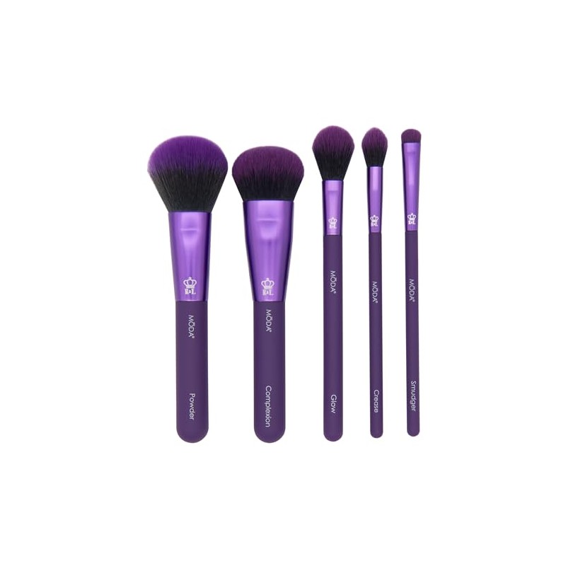 MODA Total Face Purple 6pc Makeup Brush Kit – Travel Eye Brush Set in Portable Flip Case