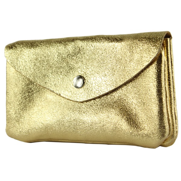 modamoda de P11 Women's Leather Purse Medium Handmade in Italy, Metallic gold