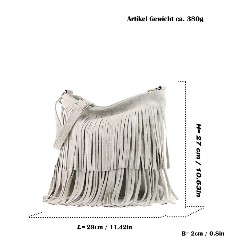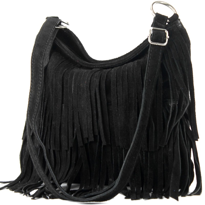 modamoda.de T125 Italian Shoulder Bag, Fringed, Suede - black, size: m