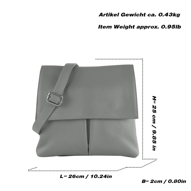 - Outer dimensions (unfilled) approx. Length: 26 cm (opening approx. 21.5 cm) x width 2 cm x height 25 cm. Non-removable shoulder strap adjustable from approx. : 68 - 130 cm. Weight: approx. : 0.530 kg (metallic design lighter) | modamoda de is a registered trademark.