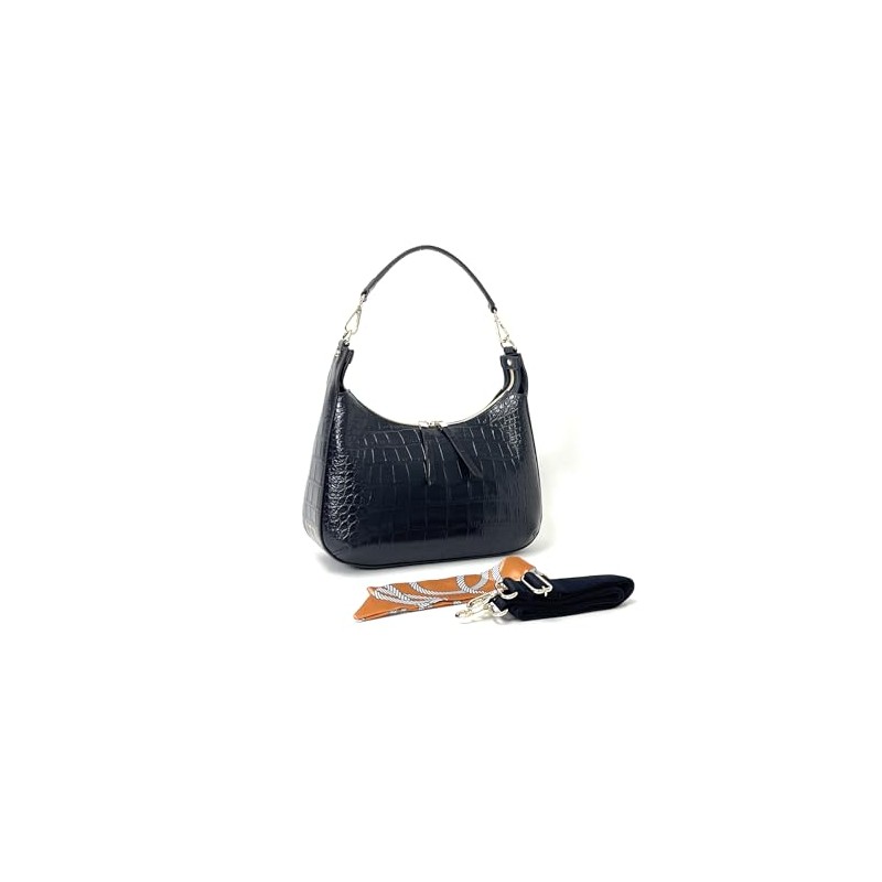 modaprincipe Crocodile Embossed 2-Way Shoulder Bag, navy