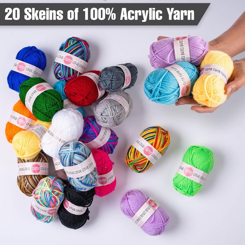 MODDA Crochet Kit for Beginners Adults and Kids - with Video Course - Make Amigurumi and Crocheting Kit Projects - Beginner Crochet Kit Includes 20 Colors Yarn, Hooks, Book, Patterns and Crochet Bag