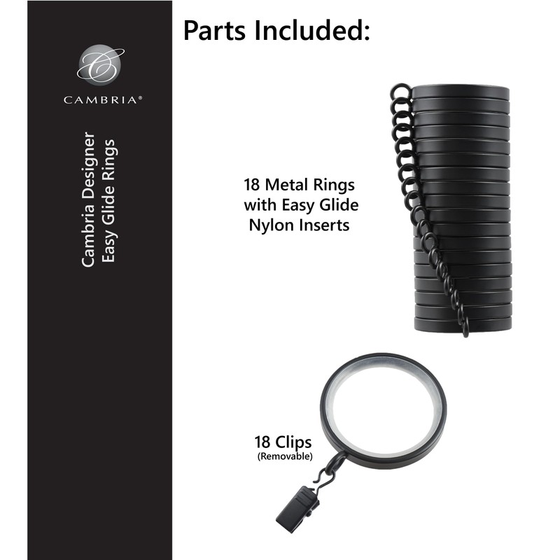 MODE Cambria Designer Series - Premium Easy Glide 18 Count Curtain Rings - Metal with Smooth, Quiet Nylon Inserts with Clips - 2 inch Diameter (1-5/8 inch Inside Diameter) - Brushed Gold