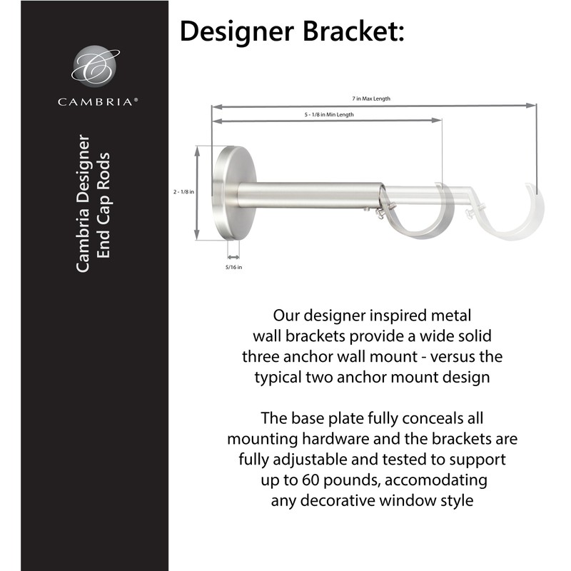 - Cambria Designer Finishes: Our opulent electroplated brushed, satin and matte finishes are of the highest quality to compliment and enhance any room; all Cambria Designer Series include a complete rod set with premium all metal designer brackets, mounting hardware and end caps, customize your look with matching curtain rings (sold separately)