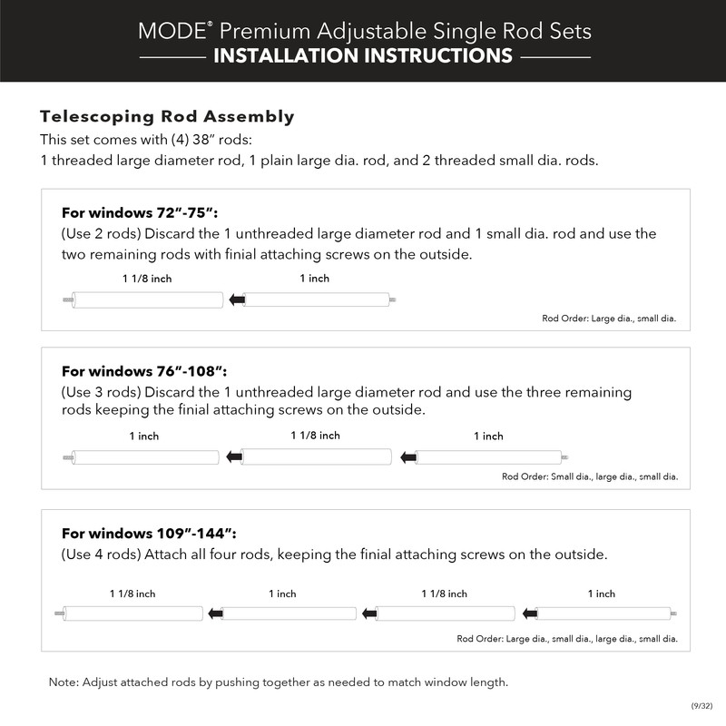 - 72” - 144” wide option comes with 4 nested telescoping curtain rods