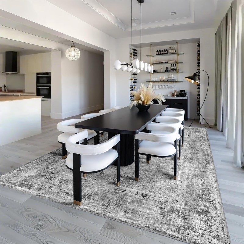 Modern Abstract Area Rug, Grey Soft Machine Washable 8x10 Rug, Non-Slip, Non-Shedding, Durable and Easy-Care, Perfect for Living Room, Bedroom, Dining Room.
