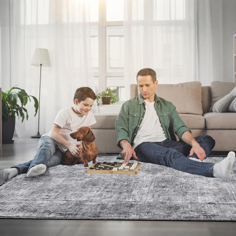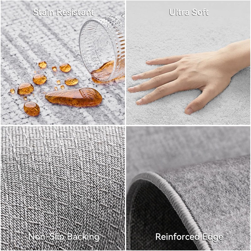 - [Kid and Pet-Friendly]: Ideal for busy households, this low-pile rug resists stains and shedding, making it perfect for homes with children or pets. Its sturdy, non-slip backing keeps it securely in place, while the fibers won't trap dirt or pet hair, ensuring an easy-to-maintain surface.