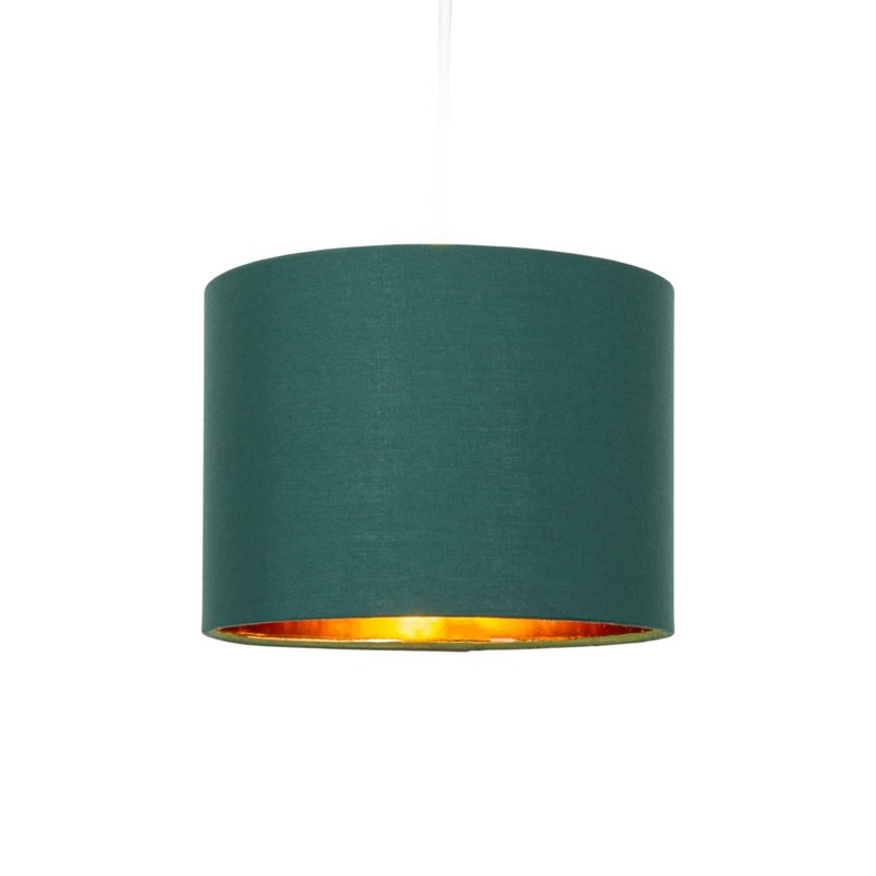 Modern and Stylish Forest Green Cotton Fabric Small 8" Drum Lamp Shade with Shiny Copper Inner - 40watt Maximum by Happy Homewares