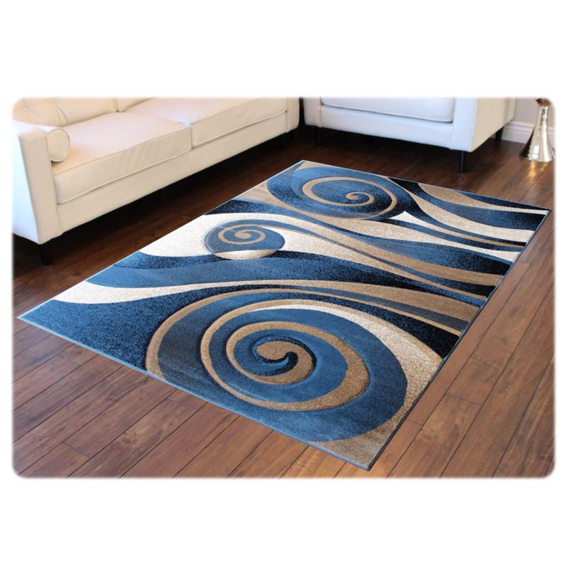High quality abstract modern contemporary swirl design, 5ft 2in by 7ft 3in area rug. Made in Turkey from 100% olefin (polypropylene) that is durable and stain resistant. . Easy to clean and vacuum (can be steam cleaned or spot cleaned with a diluted dish soap solution). Will serve as a beautiful focal point in your hallway, entryway, kitchen. Will upgrade the look and feel of your home living room bedroom. Unique design that would look great on any type of flooring.