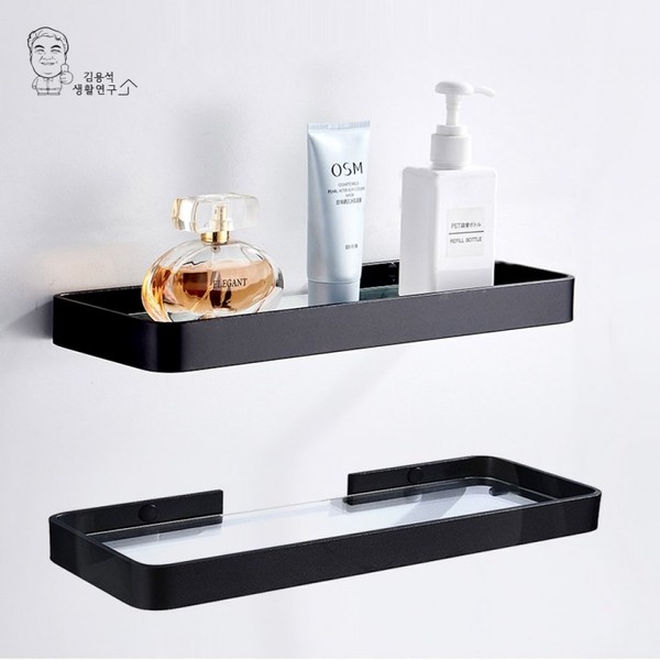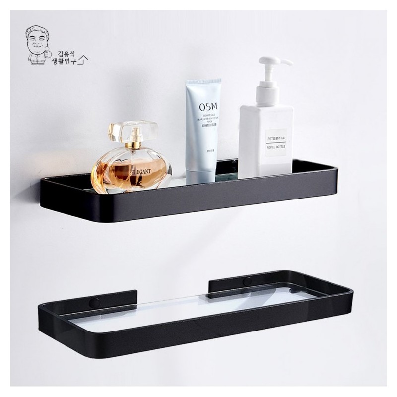 Modern Black No-Drill Glass Straight Bathroom Shelf D 30cm/Black 2ea