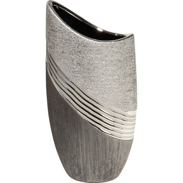 - Elaborately manufactured, this vase is made of ceramic in the colours silver and grey. The vase is decorated with a silver edge, which gives the vase its special charm. It has a total height of 20 cm.