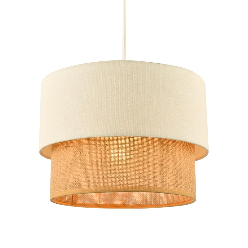 Modern Designer Double Tier Cream Fabric Linen and Natural Rattan Pendant Light Shade | 22cm x 30cm | Chic Style by Happy Homewares