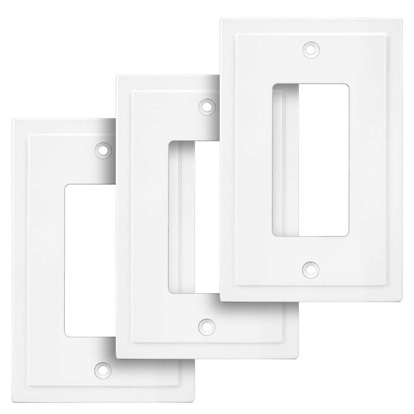 Modern Edge Decorative Wall Plate Switch Plate Outlet Cover, Durable Solid Zinc Alloy (Single Decorator 3PK, White)