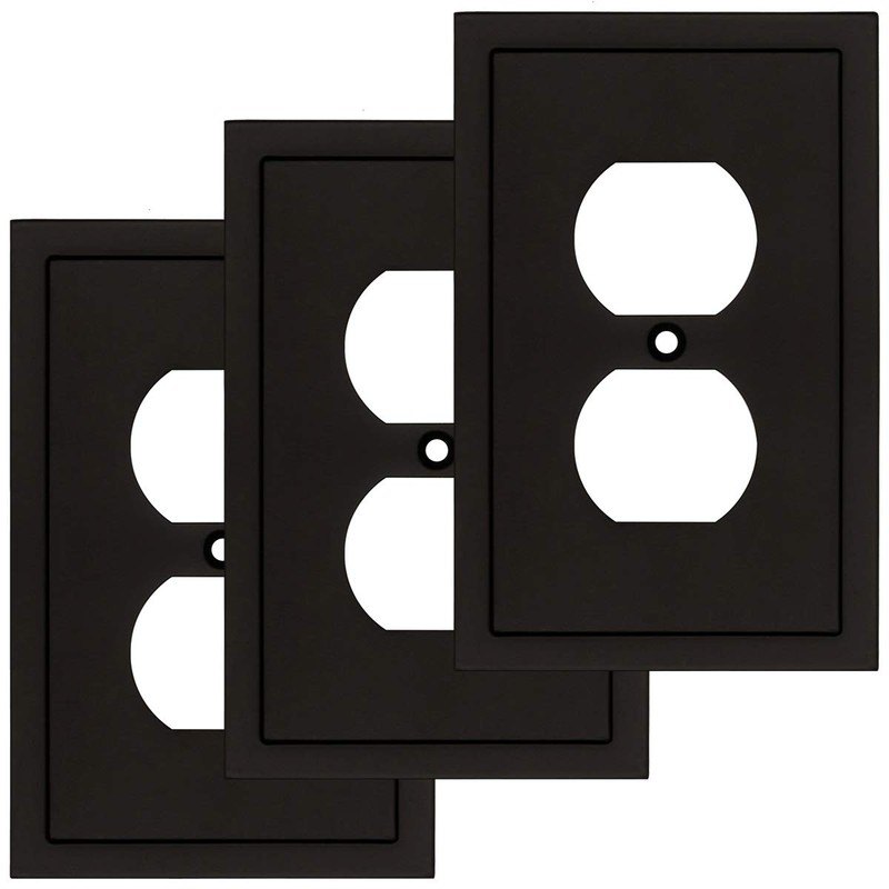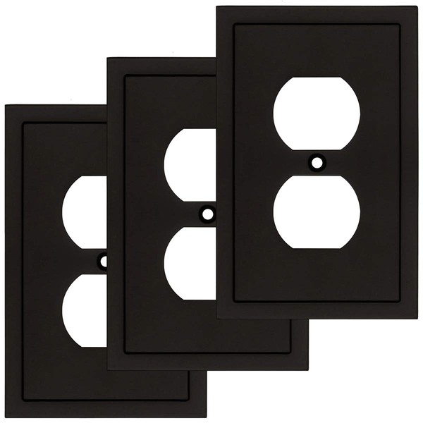 Modern Edge Decorative Wall Plate Switch Plate Outlet Cover, Durable Solid Zinc Alloy (Single Duplex 3PK, Matte Black)
