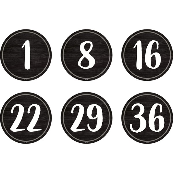 - Each label measures approximately 4" . Features a white numbers on a black wood-inspired design; 36 pieces total.