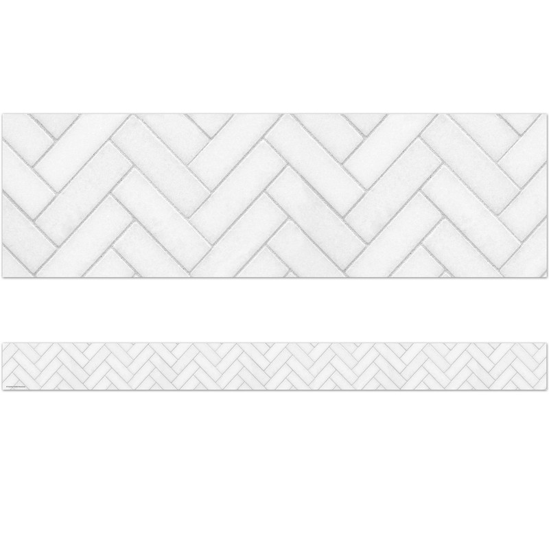 Teacher Created Resources Modern Farmhouse White Herringbone Straight Border Trim (TCR8514)