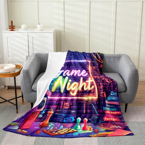 Modern Gamer Flannel Fleece Blanket Throw Size,Super Soft Cozy Game Night Plush Blankets,Lightweight Microfiber Rock Neon Throw Blanket for Couch Sofa Bed,50x60 Inches