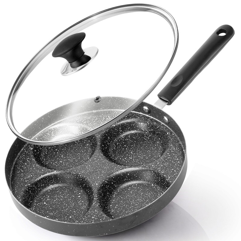 - Heavy Duty: Made of premium aluminum alloy, our egg skillet nonstick comes equipped with a stay-cool handle for easy maneuvering. The clear glass lid allows you to watch your eggs as they cook.