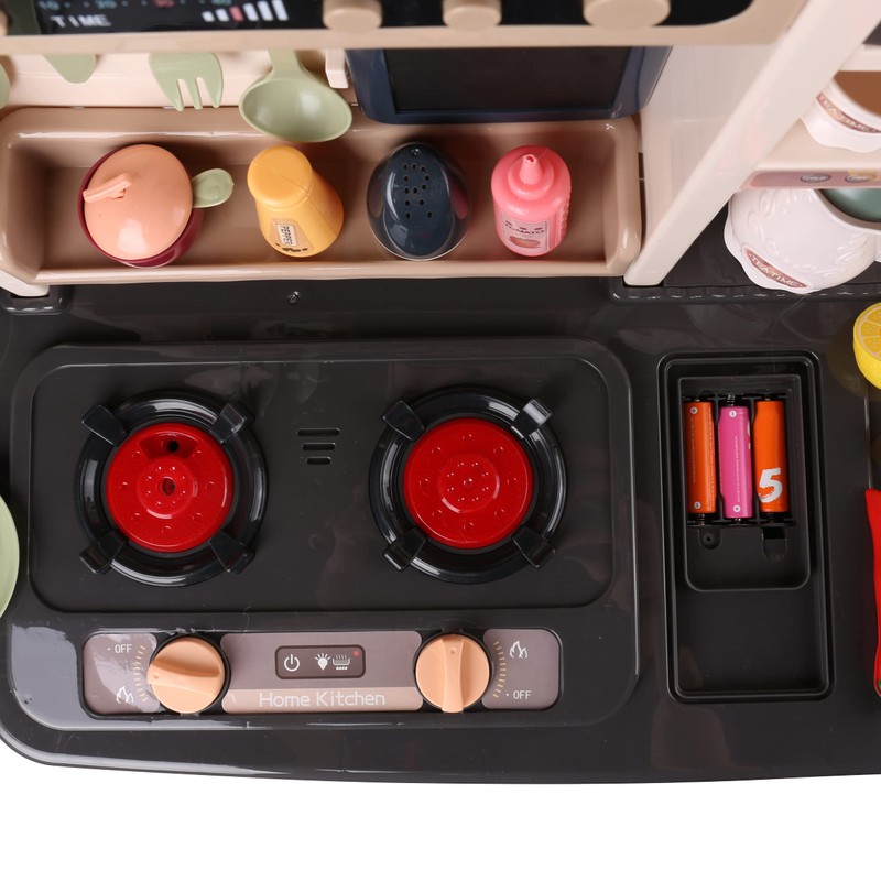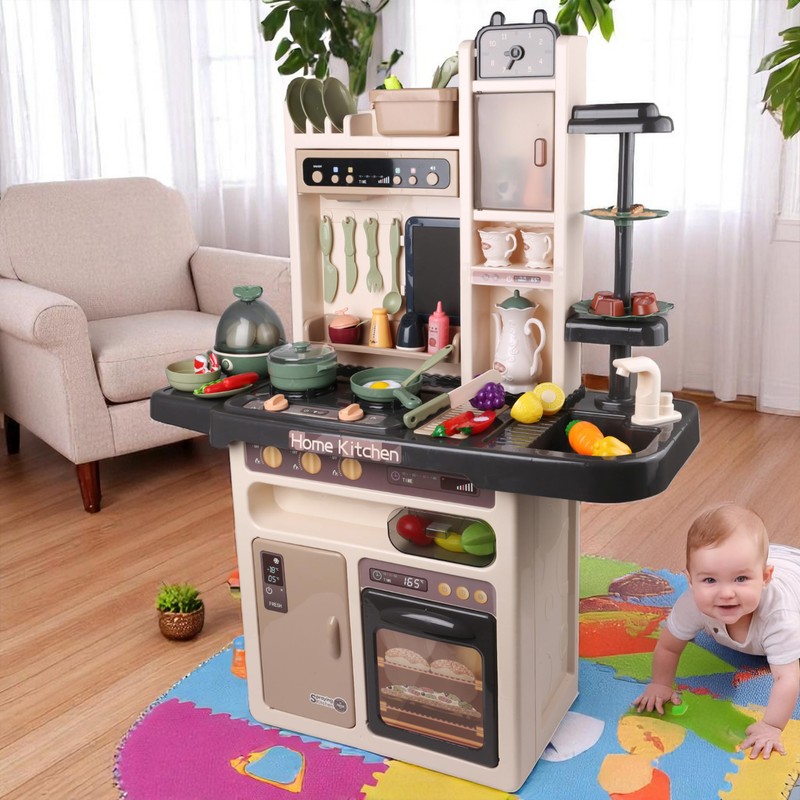 Bring home a realistic and fun-filled cooking experience for your little chef with this Modern Interactive Kitchen Playset. Designed to engage kids in imaginative role-play, this all-in-one kitchen station mimics real-life kitchen functions with real steam from water, light and sound effects, and running water from a play faucet.