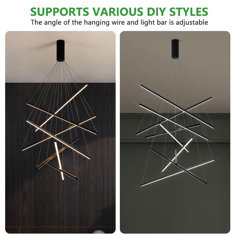 - 【DIY Your Chandelier For Home Decoration】The black modern Led chandelier is designed in multi crossed linear, makes it elegant for house decoration. You are allow to design your own linear chandelier by adjust the wires of the light. It will easily goes with all home decor style, perfect for duplex living room, dining room, entry, hallway, staircase, meeting room, hall villas, foyer, restaurant, coffee bar, office and so on.