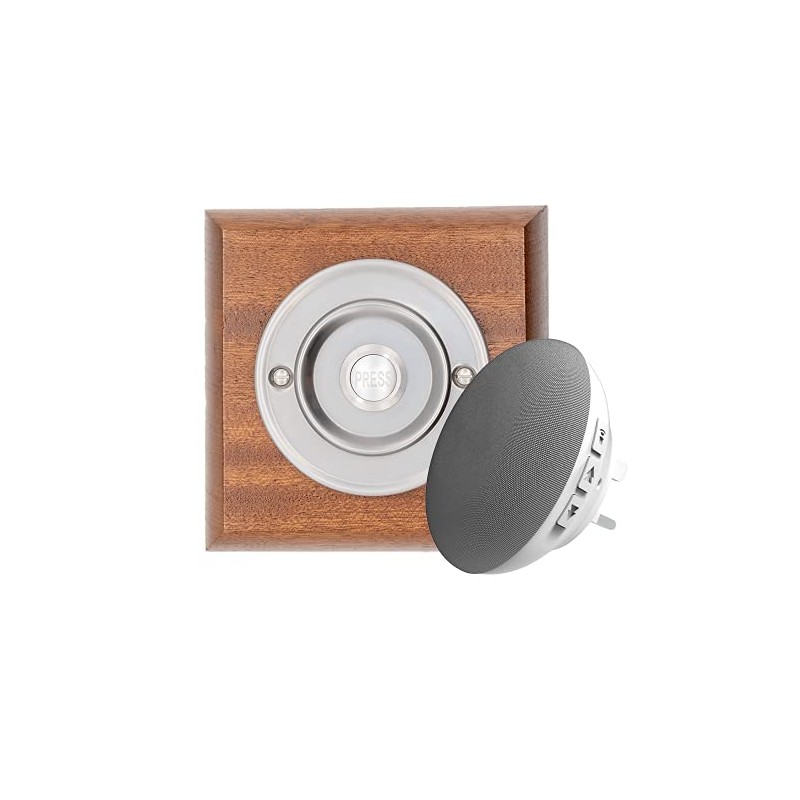 Modern Living Square Wireless Doorbell in Mahogany and Brushed Nickel - Nickel Press - Plug in F5R-Recordable