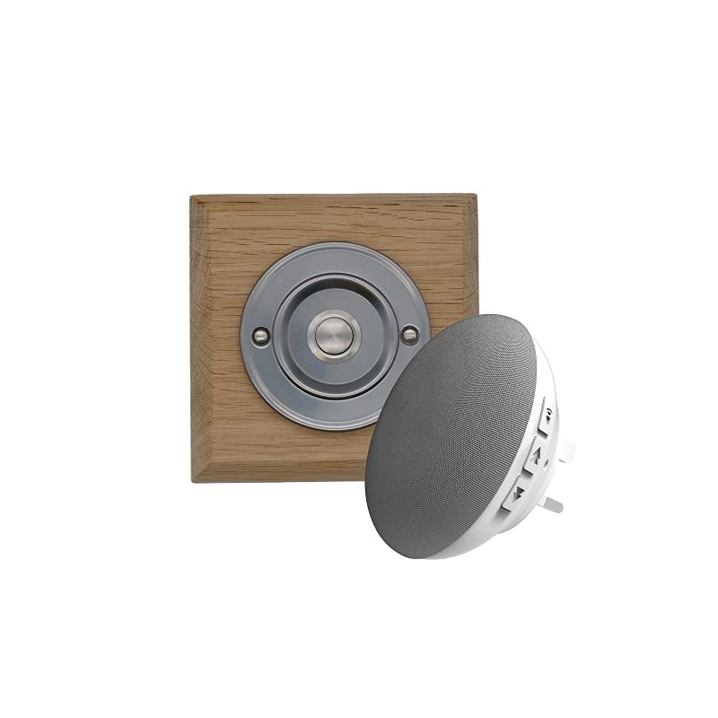Modern Living Square Wireless Doorbell in Natural and Brushed Nickel - Nickel Centre - Plug in F5R-Recordable