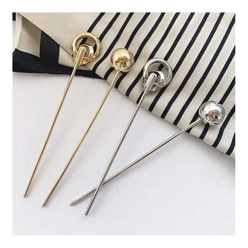 Modern Metal Ring Ball Updo Hair Stick Ball - Silver 2ea
