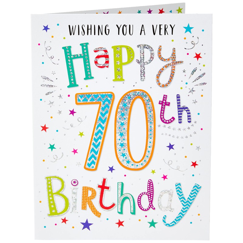 Modern Milestone Age Happy Birthday Card 70th - 8 x 6 inches - Regal Publishing,White