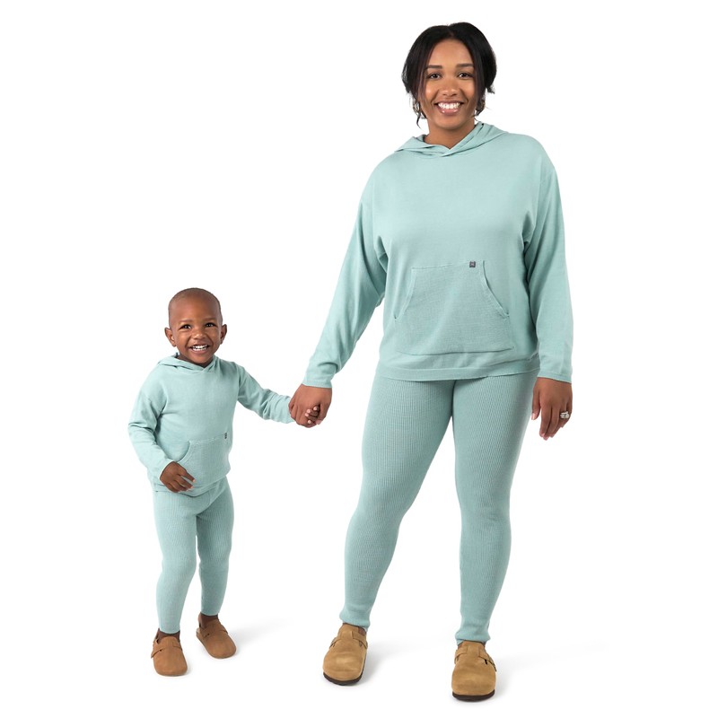 Modern Moments by Gerber Baby Girls' Mommy and Me Hooded Waffle Sweater Knit Top and Legging Set, Medium Sky, Medium