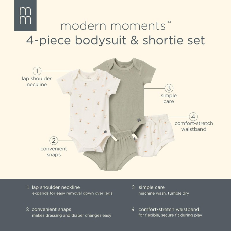 Modern Moments by Gerber Baby Neutral Short Sleeve Bodysuit and Shorts Set, Ivory Mini Island/Medium Green, 12 Months