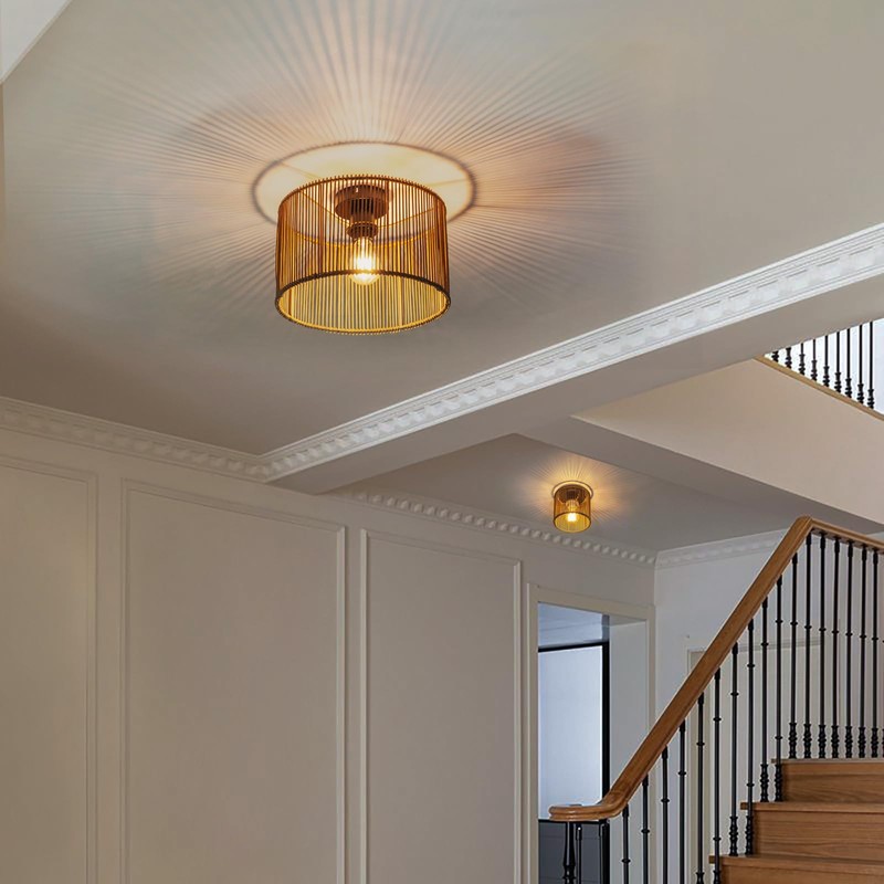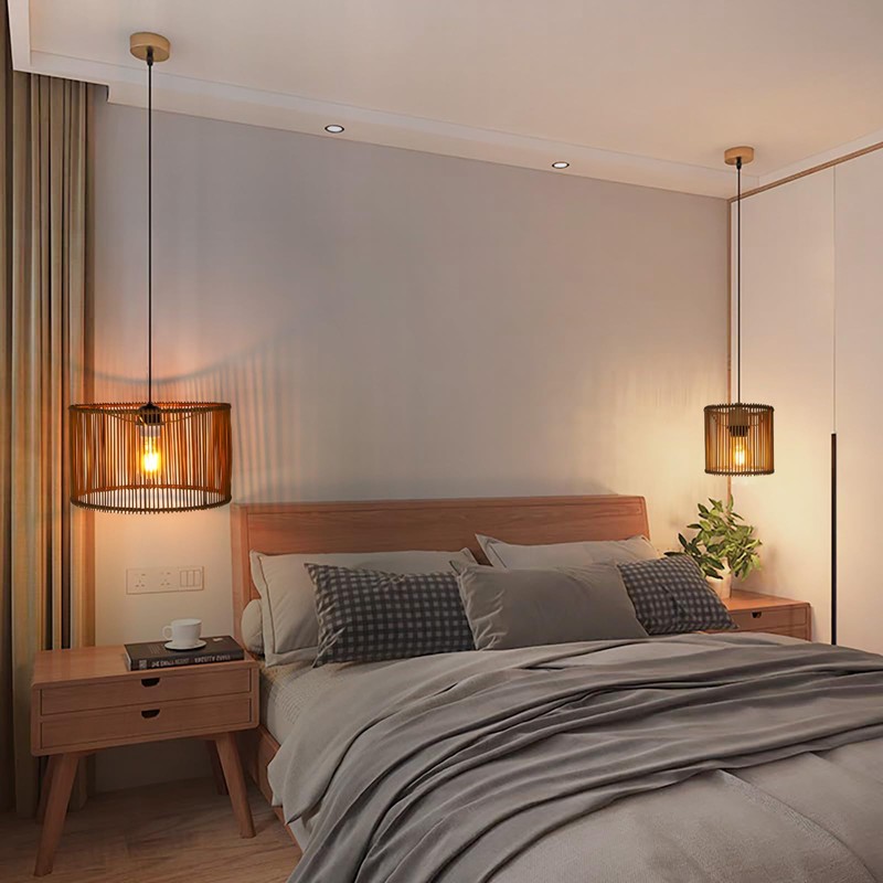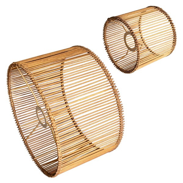 - Design: cylinder shaped lampshade in boho style with parallel rods for a unique light diffusion and shadow play