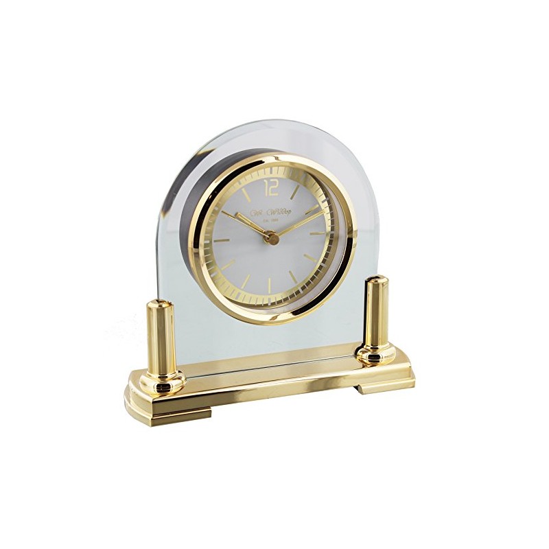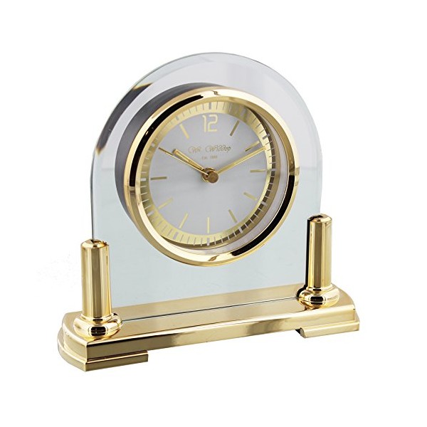 Modern Stylish Glass & Brass Two Tone Quartz Arched Design Mantel Clock