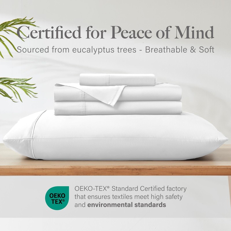 Modern Threads 100% Tencel Lyocell 4-Piece Sheet Set, 400 Thread Count Luxury Bedding, White, California King
